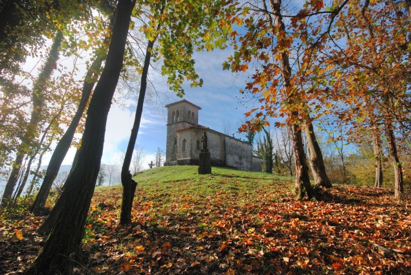 Najstrmejša in tudi najhitrejša pot nas popelje mimo znamenj, ki so morda ostanek enega najstarejših križevih potov na slovenskem ozemlju. Cerkev je namreč znana tudi zaradi Kalvarije, izklesanega marmornega spomenika s prikazom Jezusovega križanja, datiranega v začetek 17. stoletja. Ker večina križevih potov pri nas izvira iz 17. stoletja je morda ta spomenik skupaj s postajami res eden najstarejših primerkov tovrstnega stavbarstva pri nas.