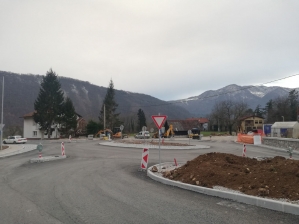 Kot smo že poročali v naših informativnih oddajah, se na glavni cesti Tolmin-Most na Soči počasi zaključujejo gradbena dela novega krožišča Rodne. Med izvajanjem projekta se je odprla možnost dodatnih posegov in izboljšav, zato je Direkcija RS za infrastrukturo zaključek projekta premaknila na april, v tem vikendu pa bo cesta Tolmin-Most na Soči pri novem krožišču tudi povsem zaprta.
