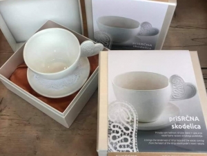 Police TIC Idrija te dni bogati nov turistični izdelek z motivom idrijske čipke. Na Zavodu za turizem Idrija so namreč v sodelovanju z Lončarskim centrom Bahor izdelali spominek, skodelico z odtisom idrijske čipke. Skodelice so ročno delo, zato je vsaka posebna in unikatna. Snovalci so skodelici nadeli ime priSRČNA, saj je ročaj skodelice izdelan v obliki srčka z vtisnjenim srčkastim motivom idrijske čipke, ki je že prepoznaven simbol Zavoda za turizem Idrija. Skodelica je tako dobila ime, embalažo in zgodbo ter s tem postala reprezentativno darilo z Idrijskega. PriSRČNA skodelica je, pakirana v paru, lahko tudi namig za poročno darilo.