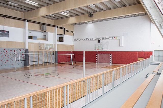 V Osnovni šoli Frana Erjavca v Novi Gorici so danes namenu predali prenovljeno šolsko veliko telovadnico. Pogodbena vrednost naložbe je 284.707 evrov, od tega je naročnik na javnem razpisu Fundacije za šport za sofinanciranje investicij v gradnje športnih objektov in površin za šport v naravi pridobil 63.578 evrov. S tem denarjem so izvedli investicijsko-vzdrževalna dela, s katerimi so izboljšali opremo. Ravnateljica Lara Brun: