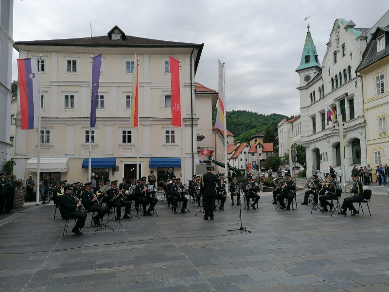 Včerajšnji promenadni koncert Orkestra Slovenske vojske na Mestnem trgu v Idriji v organizaciji Območnega združenja veteranov vojne za Slovenijo Idrija Cerkno in Občine Idrija, ki so mu slovesno noto dodali tudi praporščaki, je bil prvi v nizu letošnjih dogodkov, posvečenih 30-letnici samostojne Slovenije in 20-letnici delovanja tega območnega veteranskega združenja.