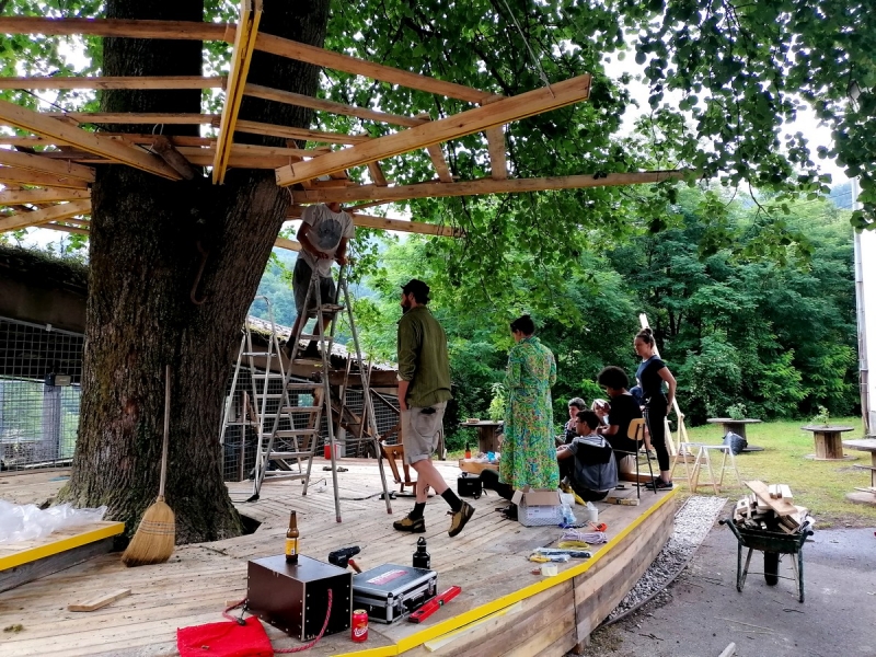 Izdelali so tudi lesene napise za območje ter dodali nekaj idej, kako bi z deli lahko nadaljevali. Christian Schwarzer, član ustvarjalnega kolektiva iz Innsbrucka.