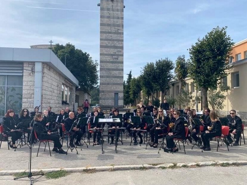 Idrijski godbeniki so na trgu v Labinu izvedli promenadni koncert, na