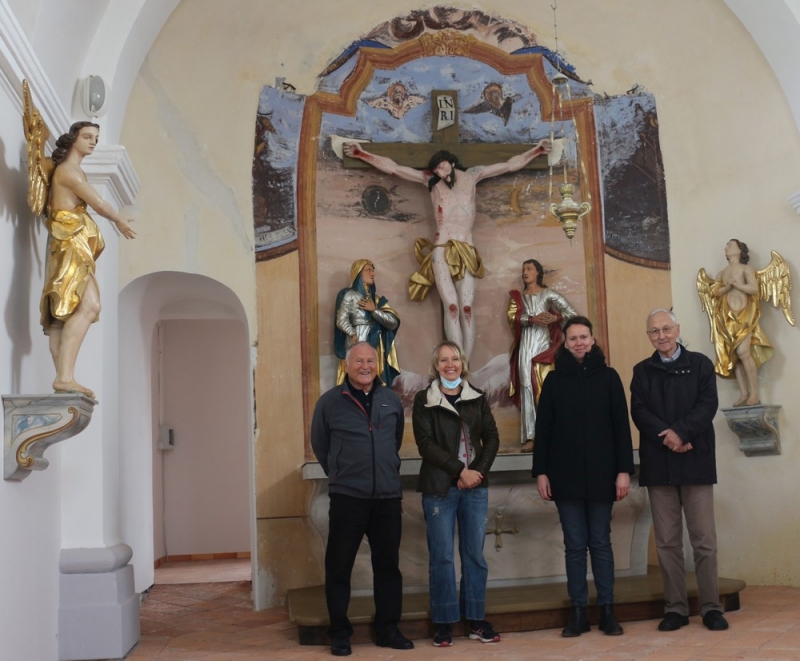 Obnovo kipov in lesenega oltarja je izvedla konservatorka in restavratorka Albina Kržič, pri projektu sta sodelovala Stanko Peterlin in Albin Petrič, za prevoz je poskrbel Stane Šuštaršič, konservatorski nadzor pa sta vodili Minka Osojnik in Marta Bensa. Del sredstev za obnovo je zagotovila župnija Planina pri Rakeku, del pa Ministrstvo za kulturo, v okviru Javnega razpisa za izbor projektov na področju nepremične kulturne dediščine Republike Slovenije 2021/2022. Gospod Maček je svečano mašo nameraval darovati 14. septembra, na praznik Svetega Križa, ker pa dela še niso bila gotova, jo bodo imeli naslednji teden, na dan spomina na mrtve.