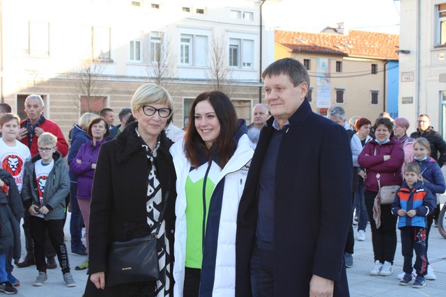 Včeraj popoldne se je na ajdovskem trgu odvil sprejem za domačinko in Ajdovsko olimpijsko junakinjo Andrejo Slokar. Vzdušje je bilo izjemno, domačini pa so s ponosom pozdravljali junakinjo iz Pekinga. Ob tej priložnosti je bilo Andreji podeljeno tudi posebno priznanje Občine Ajdovščina za izjemne dosežke. Andreja Slokar je namreč prva ajdovska športnica, ki je nastopila na zimskih olimpijskih igrah. Sprejem je kot v znak podpore pripravila Športna zveza Ajdovščina.
