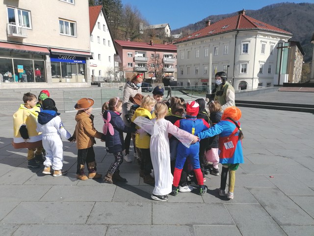No, pa kar po pravici povejmo; to pisano druščino je na osrednji mestni trg iz idrijskega vrtca in prvih razredov osnovne šole Idrija pod vodstvom vzgojiteljic in učiteljic privabil pustni torek, malo pa tudi toplo sonce, ki že počasi sporoča, da bodo pust in njegovi pomagači – maškare zagotovo odgnali zimo.