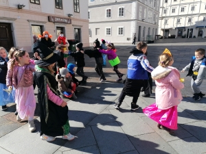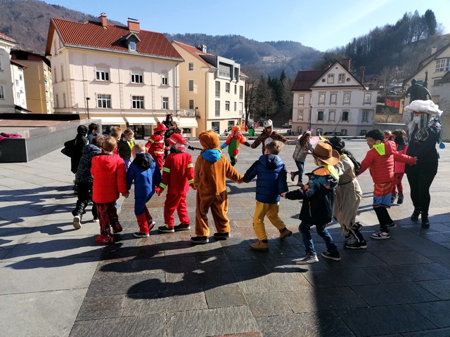 Vile in kraljične, Indijanci in kavboji, Supermani, Pike Nogavičke, levčki, gasilci, jelenčki in oblaček z dežni kapljicami ter drugi junaki iz najrazličnejših pravljic, risank, filmov in otroške domišljije so skupaj zarajali sredi mesta.