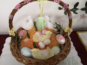 veliko število pirhov, slik, figuric iz najrazličnejših materialov