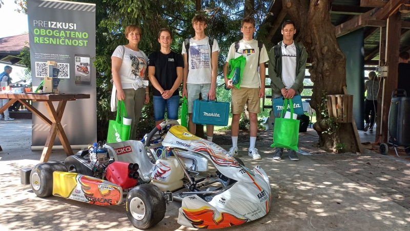 Tim Gorenc, dijak četertega letnika strojništva na GJV Idrija, ki se je dogodka udeležil kot poseben gost, je udeležence navdušil s predstavitvijo čisto pravega gokarta v živo in v obogateni resničnosti, svojega dosedanjega dela v okoljih Creo in Mathcad ter načrtov za prihodnost.