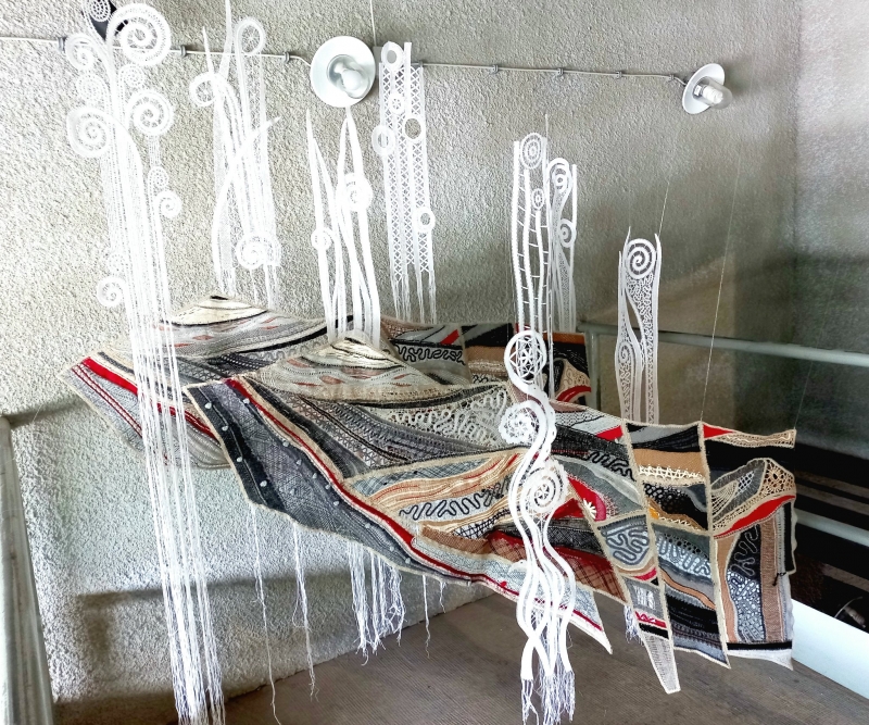 Pri klekljanju čipk so izhajale iz izkušenj, pridobljenih pri študiju kombiniranja materialov različnih debelin in struktur, predvsem volne, lanu in bombaža. Instalacija ohranja prepoznavne značilnosti idrijske čipke.