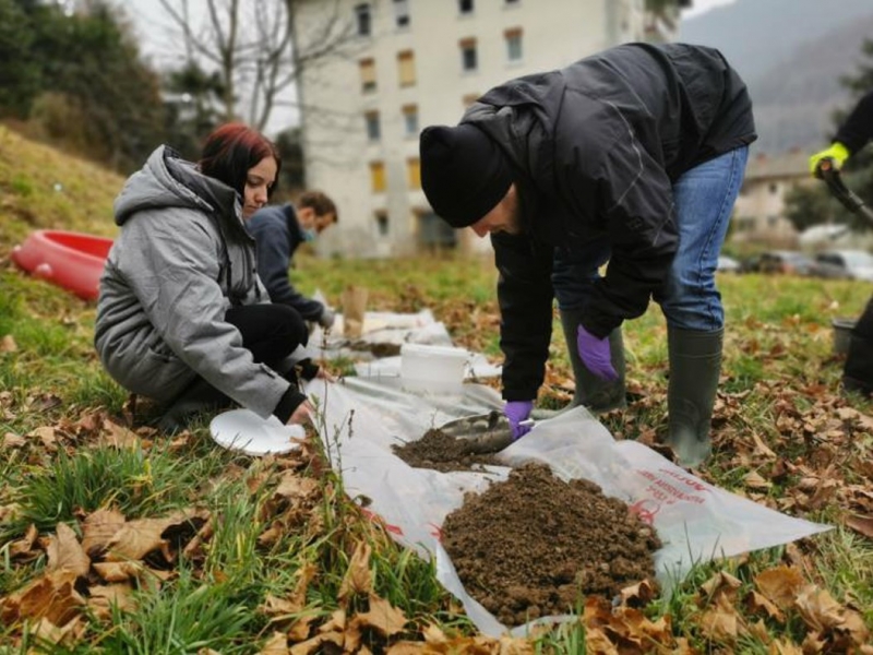 Foto: Vzorčenje tal v Desklah //vir: Končno poročilo - Vzorčenje tal na območju Občine Kanal ob Soči.