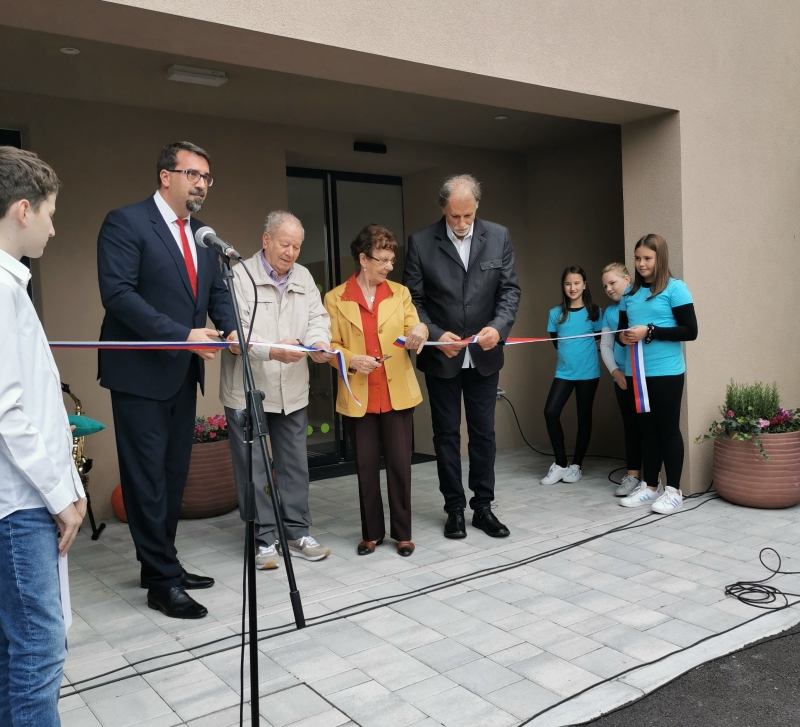 Trak ob odprtju so prerezali župan Tadej Beočanin, direktor Doma upokojencev Nova Gorica Bojan Stante, in uporabnik Hiše dobre volje Nova Gorica Andrej Batič ter uporabnica Hiše dobre volje Miren Anica Uršič.
