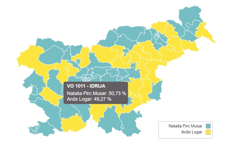 21, v občini Kobarid pa so od skupno 11 volišč Musarjevi največ glasov namenili na 9. Tudi sicer je Musarjeva zmagala na vseh voliščih
