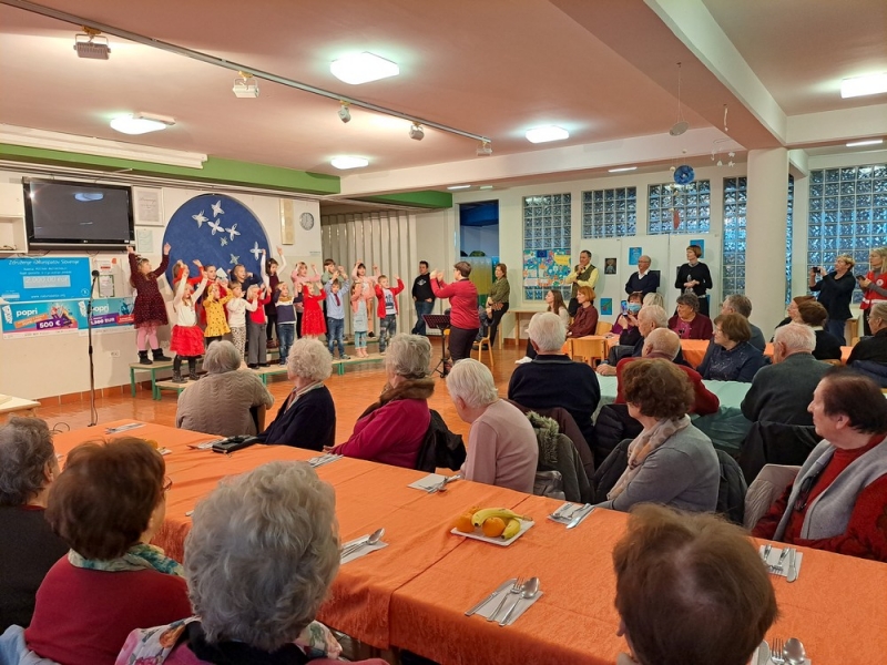 Čudovit program so za starejše pripravili učenke in učenci prvega razreda gostiteljske šole. Ob spremljavi kitare so peli in recitirali, nastope pa sta povezovali učenki Pavla Lazić in Lara Rondič. V božično obarvanem programu so sodelovali tudi solo pevka Veronika Knafelc, harmonikar Gašper Semenič, Kvartet Bršljan in Plesni Klub ADC z nastopom skupine Ajda.