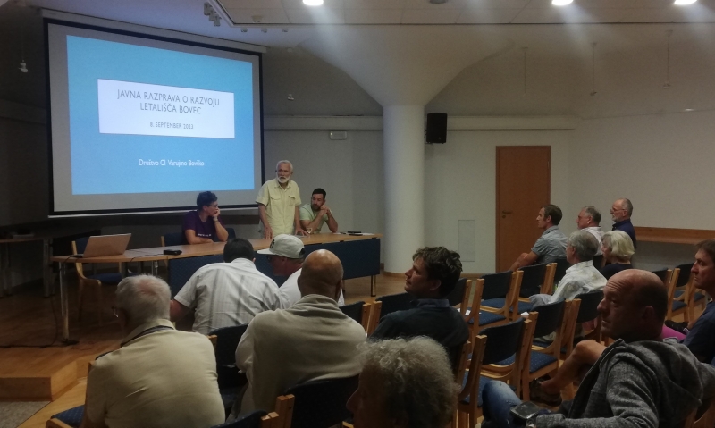 Društvo Civilna iniciativa Varujmo Bovško je včeraj organiziralo javno razpravo o letališču Bovec, s katero so želeli spodbuditi pripravo strategije in programa njegovega razvoja. Letališče mora ostati, potrebno se bo dogovoriti o obsegu njegovega delovanja. Še vedno bi si želeli zmanjšati hrup, čeprav je bilo delovanje letališča že precej prilagojeno.