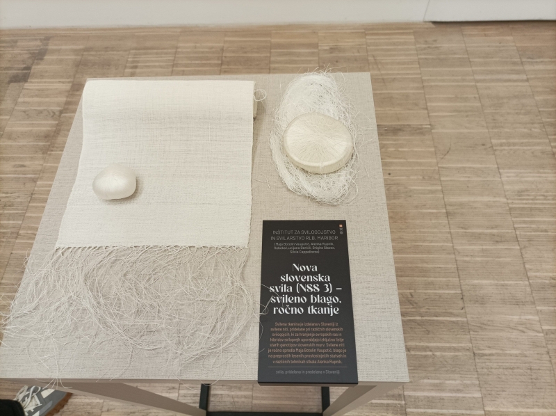 V Koroški galeriji likovnih umetnosti v Slovenj Gradcu je te dni v okviru Trienala rokodelstva postavljena zanimiva razstava izdelkov, ki dokazujejo bogastvo rokodelskih znanj na Slovenskem. Na njej je na ogled tudi izdelek iz slovenske svile, ki ga je stkala idrijska rokodelka Alenka Rupnik.