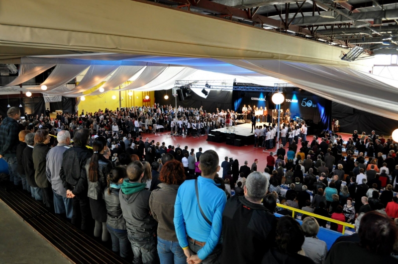 Na fotografiji: praznovanje 50-letnice šole leta 2013 (Gimnazija Tolmin)