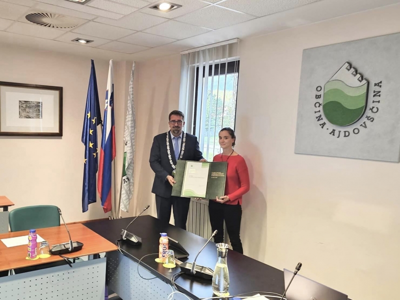 Deveta redna seja Občinskega sveta Občine Ajdovščina se je včeraj začela s podelitvijo županovega priznanja za plemenito dejanje. Župan Tadej Beočanin je priznanje podelil Evi Bras za nesebično pomoč otroku v nesreči, ki se je dušil. Eva se je namreč ob situaciji nemudoma odzvala in otroku nudila pomoč ter mu tako rešila življenje.