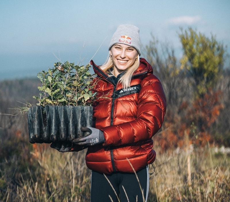 Zlata olimpijka Janja Garnbret je akcijo sajenja dreves prvič izvedla leta 2022 na domačem Koroškem z namenom nadomestitve oglljičnega odtisa svojih potovanj. »Emisije ogljika sem sprva povezovala predvsem z mobilnostjo, v procesu iskanja lastne hiše pa sem se naučila, da so lahko emisije zaradi bivanja in elektrike enake ali celo večje od vpliva mobilnosti,« pravi Garnbretova.