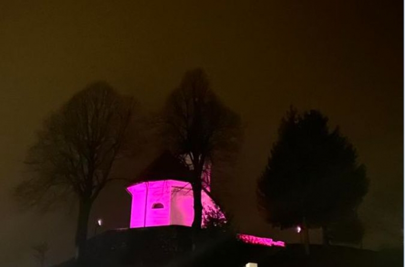 Foto: Občina Logatec, osvetljena cerkev ob Mednarodnem dnevu epilepsije