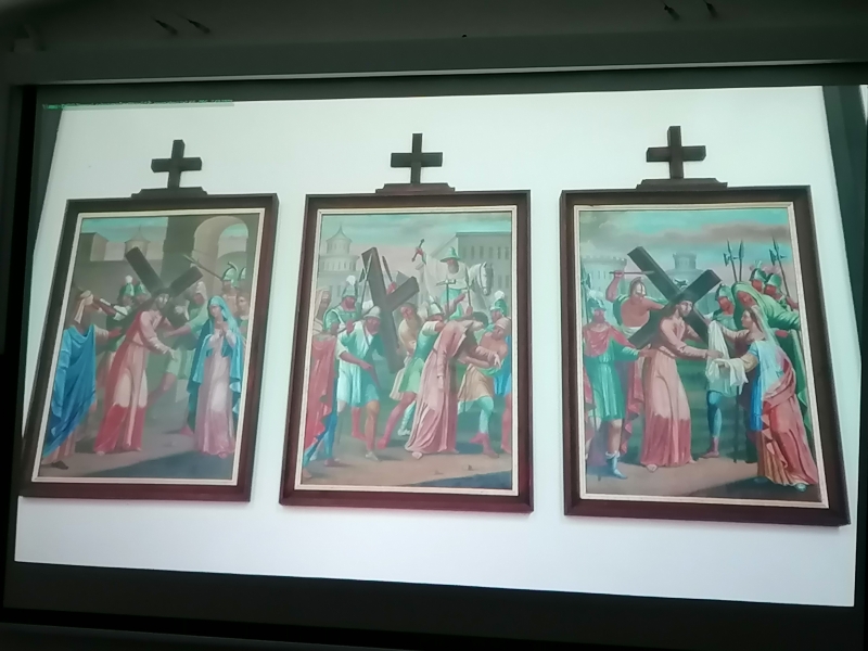 Foto: S predavanja: 4., 5. in 6. postaja križevega pota v cerkvi Žalostne Matere Božje na pokopališču v Idriji