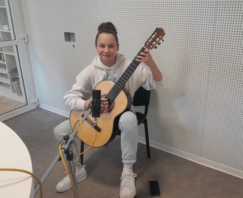 Uvodoma pa bomo seveda spoznali Julijo kot kitaristko in v glasbenem intermezzu prisluhnili delu njenega tekmovanega programa, ki smo ga posneli v studiu Primorskega vala.