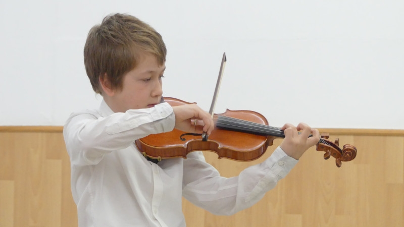 10-letni Jaka se violino uči šele nekaj let in čeprav pravi, da po poklicu ne bo glasbenik, ima violino rad in jo tudi pridno vadi.