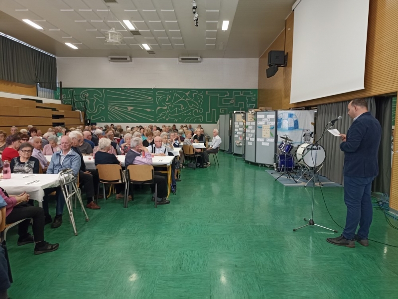 Rdeči Križ Ajdovščina je po tradiciji v Srednji šoli Veno Pilon tudi letos zbral kar 180 občanov, ki štejejo več kot 80 pomladi. Uvodoma jih je nagovoril podžupan Občine Ajdovščina Matjaž Bajec, ki je tudi izročil nageljček najstarejšemu med prisotnimi, 98 letnemu Francu Bratini.