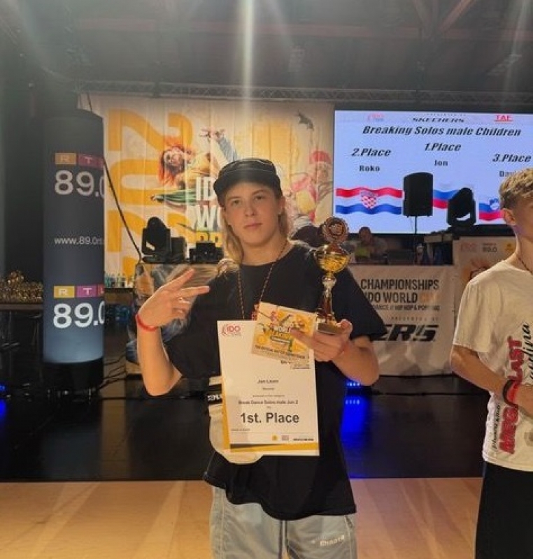 16-letni ajdovski plesalec Jon Ličen je po osvojitvi naslova državnega in evropskega prvaka ter svetovnega podprvaka letos osvojil še naslov IDO svetovnega prvaka v solo breakingu v Magdeburgu v Nemčiji. Jon je v začetku letošnje sezone skupaj s trenerjem Samom Polutakom Kosom zamenjal klub in po novem trenira v plesnem klubu Minimundo v Ljubljani. Poln motivacije in zanosa se vrača na plesno sceno in z naslednjim letom prehaja med plesalce člane, kjer namerava v prihodnje prodreti še na konkurenčnejša plesna tekmovanja po svetu. Prva v vrsti so tekmovanja na Kitajskem in Japonskem. Jon za uresničevanje svoje plesne kariere še vedno išče finančno podporo, ki bi mu omogočila boljše pogoje. Zahvaljuje se vsem, ki podpirajo njegovo plesno aktivnost.