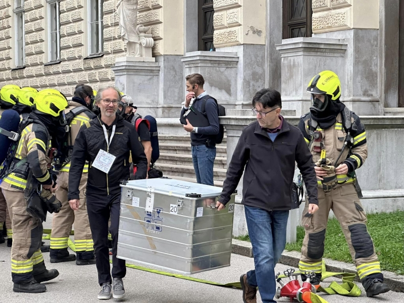 V mesecu požarne varnosti je v Narodnem muzeju Slovenije potekala vaja evakuacije ljudi in kulturne dediščine. Skladno z načrtom reševanja arheoloških predmetov v primeru požara so iz muzejske stavbe reševali svetovne unikume, najpomembnejše arheološke najdbe z območja Slovenije, ki jih hrani Narodni muzej Slovenije in so na ogled v stalni arheološki zbirki Zgodbe s stičišča svetov. Načrt reševanja arheoloških predmetov je pripravil konservator-restavrator in vodja varnosti v Narodnem muzeju Slovenije Gorazd Lemajič v sodelovanju z muzejskimi arheologi.