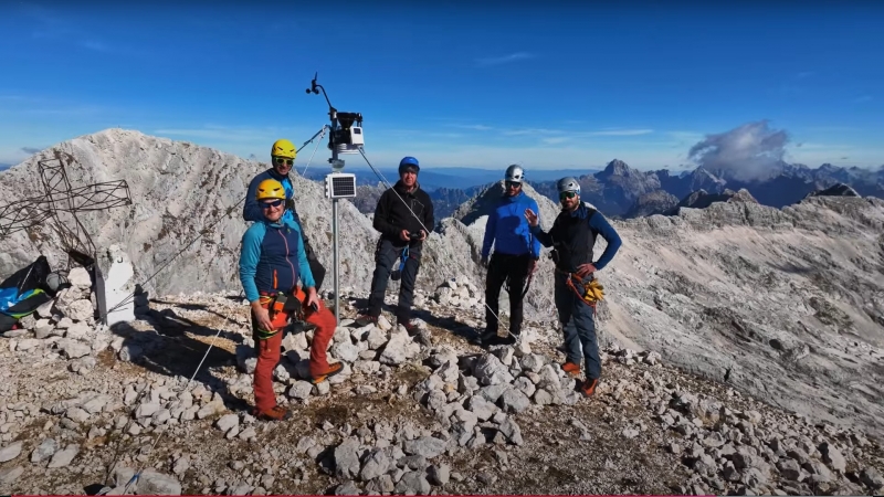 Naslovna fotografija: Raziskovalci Alpsko-jadranske meteorološke službe ob postavitvi opazovalnice. Vir: Youtube posnetek