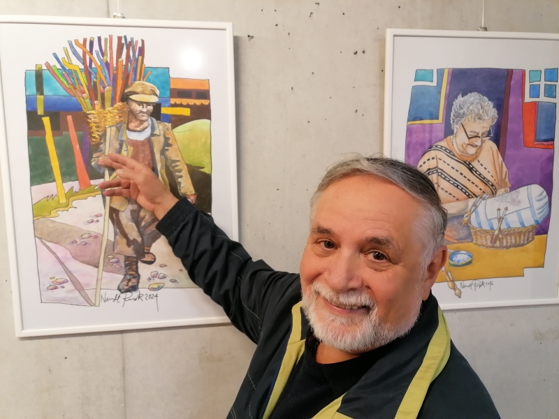 V letošnjem letu namreč beleži cel niz obletnic: zaokrožil je 75-letnico življenja in 55 let likovnega ustvarjanja, ki jima posveča novo razstavo v idrijski galeriji sv. Barbare. Ta je že njegova 80. samostojna razstava, na kateri likovnik, ki je sicer najbolj poznan po idrijskih vedutah in z rojstno Idrijo povezanih tematikah, tokrat na ogled postavlja portrete.