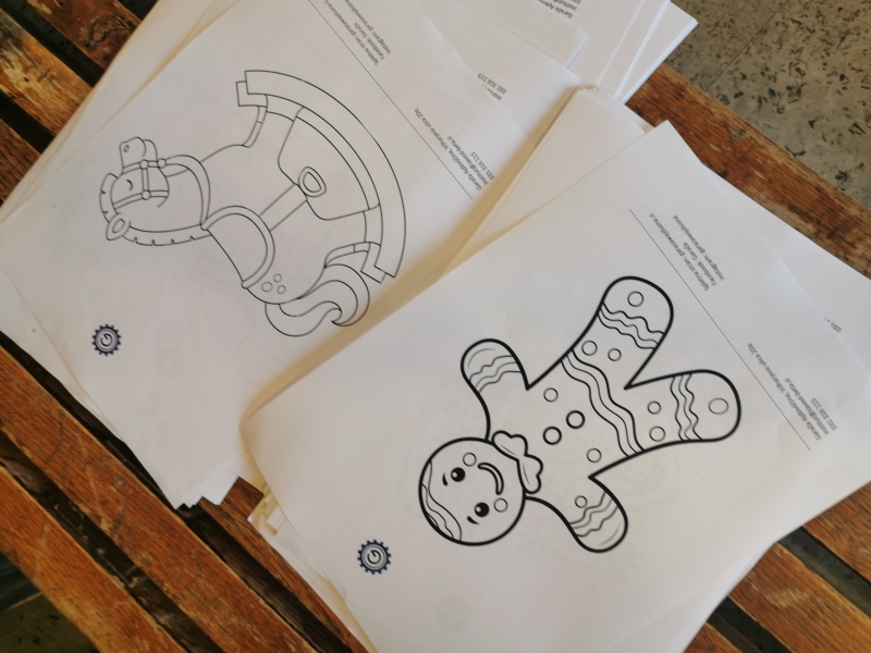 Sestavljanka, sestavljena iz 24 delov, je zaradi svoje zahtevnosti zahtevala sodelovanje treh ali štirih otrok, ki so posamezne dele skrbno barvali z akrilnimi flomastri. Ob ustvarjanju je na delavnici vladalo prijetno in praznično vzdušje. Mladi umetniki so poleg sestavljank barvali tudi božične pobarvanke, ki so jih s svojo domišljijo obarvali v mavrične odtenke in tako še dodatno prispevali k decembrskemu vzdušju.
