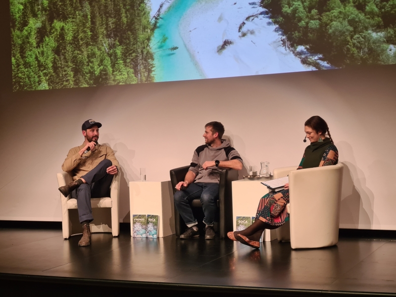 Tolminsko Kinogledališče je v četrtek gostilo predstavitev veslaškega vodnika Soča od izvira do morja, pod katerega se podpisujeta Rok Rozman, eden vidnejših članov organizacije Balkan River Defence, in Rožle Bregar, fotograf in snemalec, specializiran za delo v ekstremnih pogojih.