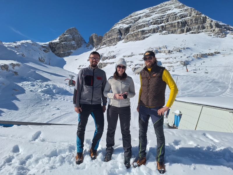 Fantje iz podjetja Sončni Kanin pa še zdaleč niso edini obiskovalci, če lahko tako rečemo, zaprtega smučišča. Razmere že drugo sezono z veseljem izkoriščajo tudi turni smučarji. Ob našem obisku jih sicer nismo uspeli natančno prešteti, jih je pa zagotovo bilo toliko, da lahko potrdimo dejstvo, da je Kanin postal njihov mali raj. Pri vzponu ali počitku jih je zmotila Simona Skočir.
