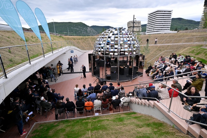 Poleg ministra Arčona so zbrane pozdravili tudi deželni glavar dr. Kaiser, Monika Kircher, članica upravnega odbora Koroške kulturne fundacije, ki je kupolo vse do jeseni posodila Evropski prestolnici kulture, in drugi pomembni gostje.