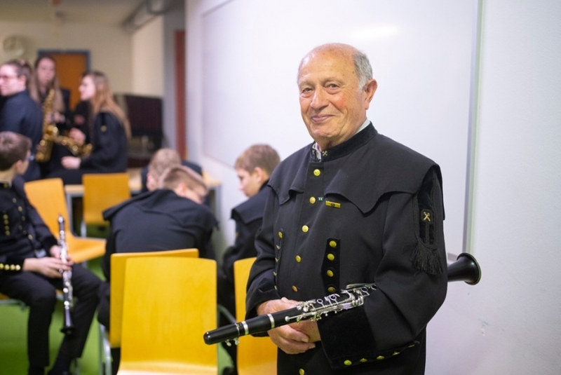 Pri svojih 88 pomladih je že 75 let član idrijske godbe in še vedno v prvi vrsti narekuje tempo prvomajske budnice. Preigral jih je že skoraj 70, v vsakem vremenu koraka in hkrati igra po vseh idrijskih klancih. Koliko je bilo v vseh teh desetletjih koncertov, nastopov in vaj, niti ne šteje več.