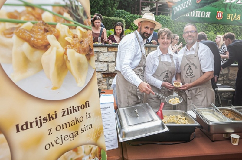 Posebno mesto na sprejemu je imela občina Idrija, ki se je predstavila s tradicionalno kulinarično ponudbo, kot so idrijski žlikrofi, in rudarsko pijačo geruš.