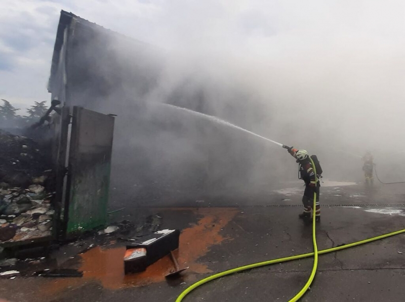 Včeraj je nekaj minuto po 13. uri prišlo še do požara v zbirnem centru Vrtojba v bližini nekdanjega mejnega prehoda. Zagorelo je v zbiralniku za plastične odpadke, ogenj pa se je nato razširil na zabojnika z mešanimi odpadki in papirjem.