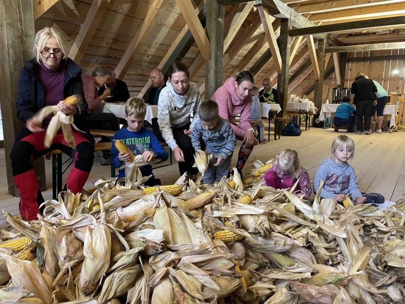 Kot smo že poročali, sta minulo soboto, 27. septembra, na dan geopestrosti in svetovnega dana turizma, Turistično kulturno društvo Kanomlja in Unesco Globalni Geopark Idrija pripravila zanimiv dogodek, ki je obiskovalce popeljal nazaj v preteklost. Na domačiji pr’ Ivaniš v Gorenji Kanomlji so obudili star jesenski običaj ličkanja koruze, ki je v sproščenem in veselem vzdušju povezal domačine, pohodnike in obiskovalce od blizu in daleč. To je bil le eden izmed mnogih dogodkov Turistično-kulturnega društva Kanomlja, ki je bilo ustanovljeno leta 2007 na pobudo nekaj domačinov z željo po ohranjanju kulturne in naravne dediščine ter krepitvi socialnih vezi v kraju. Društvo pa danes ni pomembno le za domačine – s svojimi dogodki in dejavnostmi pomembno prispeva tudi k turistični predstavitvi Kanomlje in širšega idrijskega območja. Njegovo delovanje je preraslo začetno skromnost in postalo prepoznavno tako v kraju kot zunaj njega, saj s povezovanjem, sodelovanjem in promocijo ohranja dediščino ter jo hkrati predstavlja obiskovalcem kot del bogate zgodbe tega kraja. O tem, kako društvo povezuje krajane, skrbi za dediščino in hkrati odpira vrata turistom, smo govorili s Tanjo Velikanje iz Turistično kulturnega društva Kanomlja.