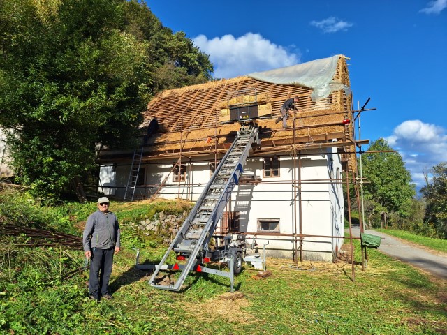 Domačija pisatelja Cirila Kosmača v Bukovici pri Slapu ob Idrijci v zadnjih tednih dobiva novo slamnato streho, za katero bo poskrbel slamokrovski mojster Slavko Šorli iz Kneških Raven.