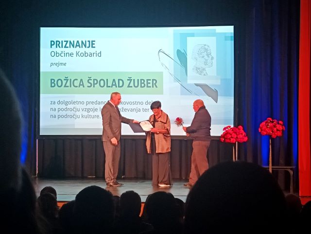 Najvišje priznanje, priznanje Občine Kobarid, si je z dolgoletnim predanim in kakovostnim delom na področju vzgoje in izobraževanja ter na področju kulture prislužila Božica Špolad Žuber: