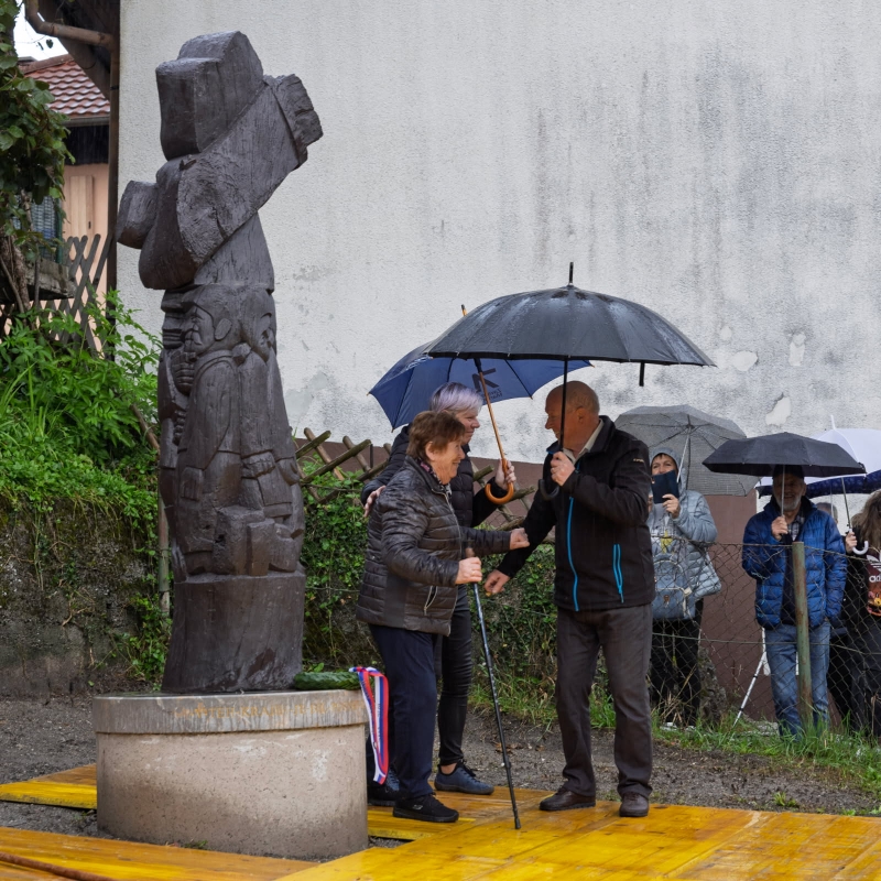 Replika spomenika, ki zdaj stoji na Grahovem ob Bači, je izdelana iz trpežnejšega materiala, odpornega na vremenske vplive. Tudi obiskovalcev dež ni ustavil, je pa glavnina prireditve potekala v dvorani Doma krajanov.