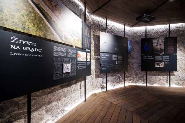 Večino vsebin predstavlja panojska razstava o zgodovini gradu in območja od 30.000 pr. n. št. do danes. Grad je sicer tudi pomembno arheološko najdišče z najdbami od prazgodovine naprej, kakor je dejal arheolog Tolminskega muzeja Miha Mlinar, je edino obdobje, ki se v najdbah še ni pokazalo, zgodnji srednji vek.