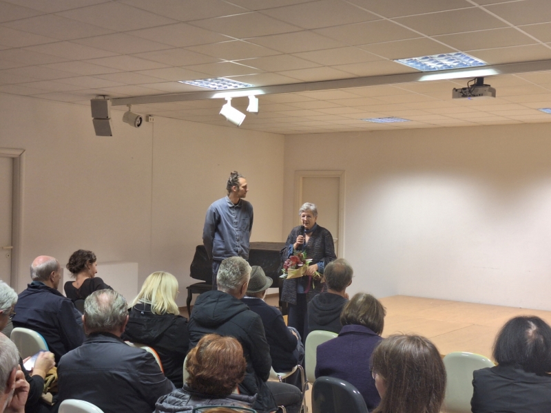 V Slovenskem kulturnem domu v Špetru so v petek pripravili bogat kulturni večer, ki je združil likovno umetnost in film. Obiskovalci so se najprej udeležili odprtja razstave Utrinki umetnice Dee Volarič, ki živi in ustvarja na Mostu na Soči.