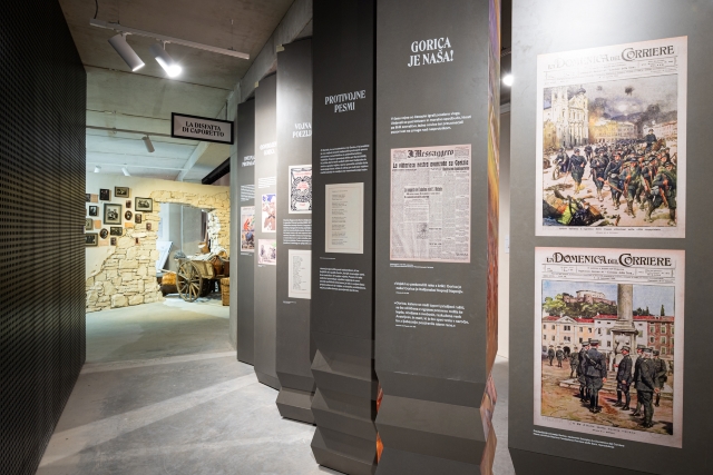 Na primeru poraza oziroma čudeža pri Kobaridu in gradnje novega mesta so oblikovalci ponazorili tudi, kako so isti zgodovinski dogodek različno prikazovali italijanski ali avstrijski oziroma nato slovenski mediji oziroma propaganda.
