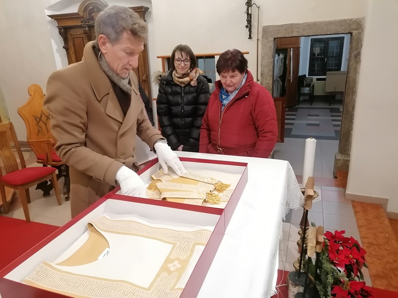 Po javni predstavitvi so mašni plašč, mitro in štolo za papeža ter dve dalmatiki za diakona zložili v tri darilne škatle, ki jih bodo odpeljali v Vatikan, kjer bodo 16. januarja to darilo slovenski škofje papežu izročili ob ad limina Apostolorum osebnem srečanju z njim.