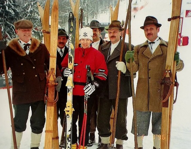 Ekipa smučarjev po starem (Foto arhiv društva)