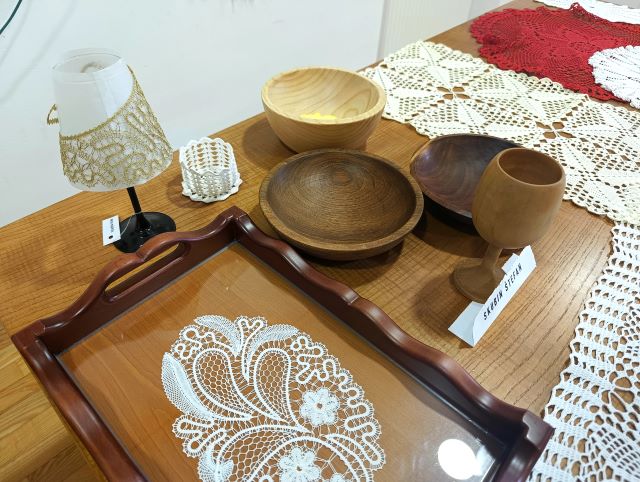 Med pisano paleto razstavljenih umetnin prednjačijo pletenine ter štrikani in kvačkani izdelki članic društva, medtem ko sta od moških ustvarjalcev svoje izdelke prinesla dva člana.