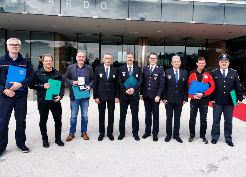 Bronasti znak CZ sta na Brdu prejela tudi bovški župan Valter Mlekuž in komandir Policijske postaje Idrija Bojan Bizjak.